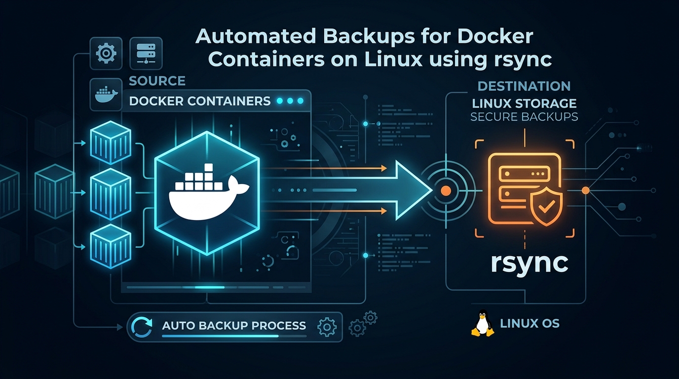 Docker containers are ephemeral, but their data resides in volumes or bind mounts. To create a reliable backup, we must identify the source directories on the host, compress the data, and synchronize it to a remote storage target. Using rsync is ideal because it handles delta transfers efficiently, saving bandwidth and time.
