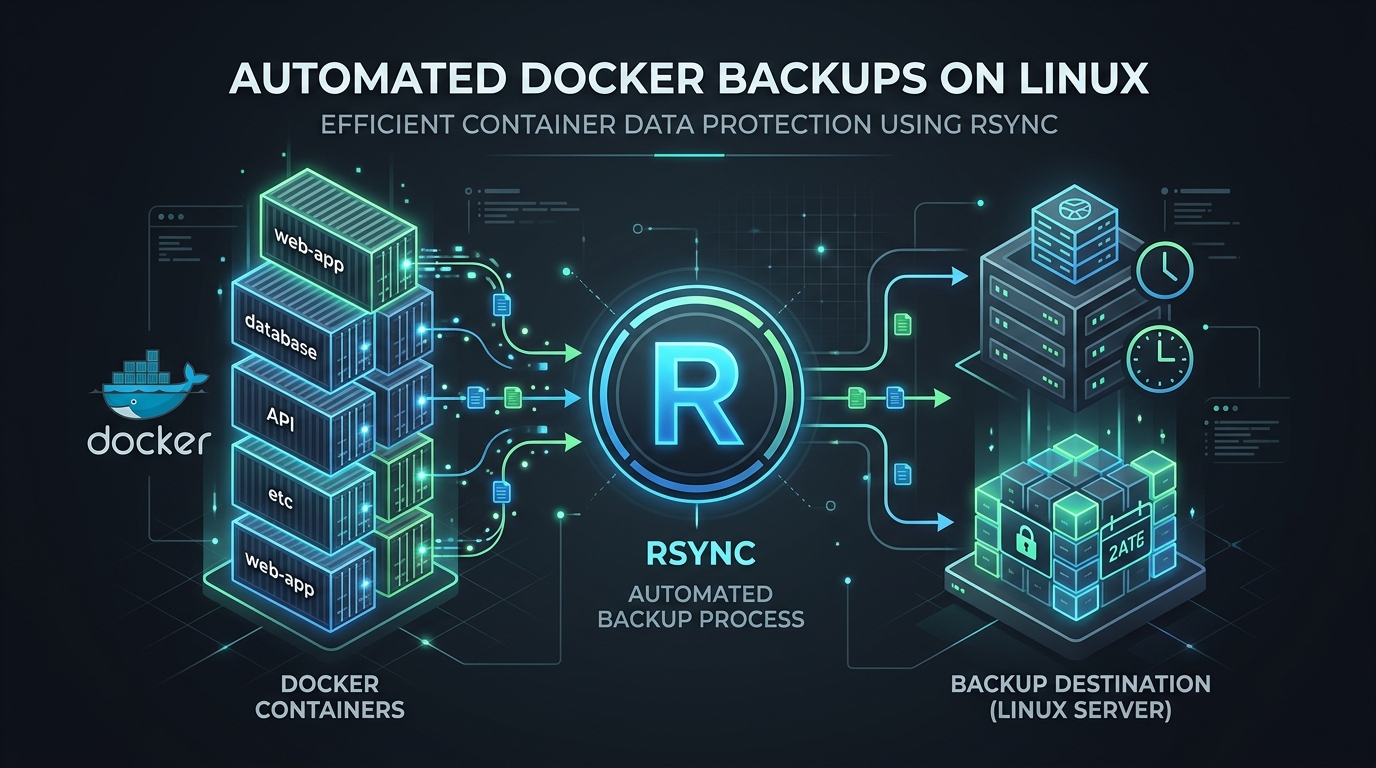 In the containerized ecosystem, the “ephemeral” nature of Docker containers is a feature, not a bug. However, the data stored within volumes is persistent and mission-critical. Many administrators fall into the trap of using docker cp or simplistic tarball snapshots. While these work for homelabs, they are insufficient for production environments where consistency, automation, and speed are non-negotiable. Today, we implement a hardened backup strategy using rsync, the industry standard for differential, low-overhead data synchronization.
